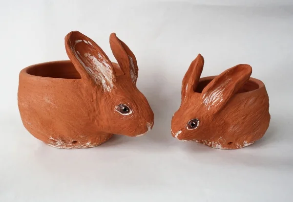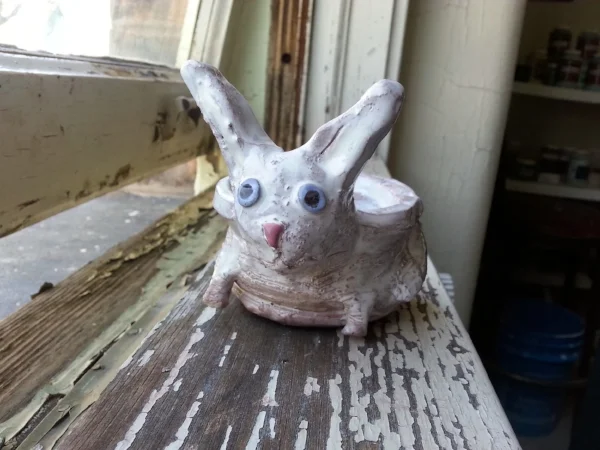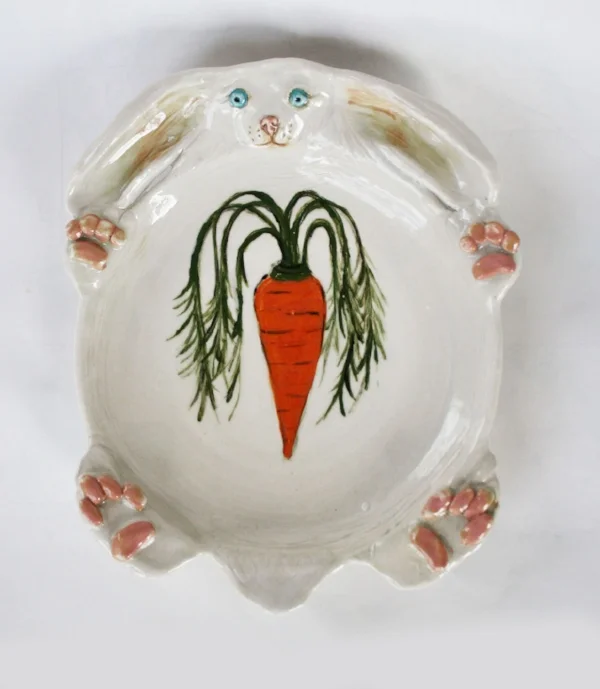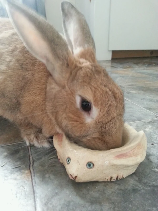 in 2014 I started making specially shaped food dishes designed so my girl couldn't throw them, as rabbits LOVE to do.