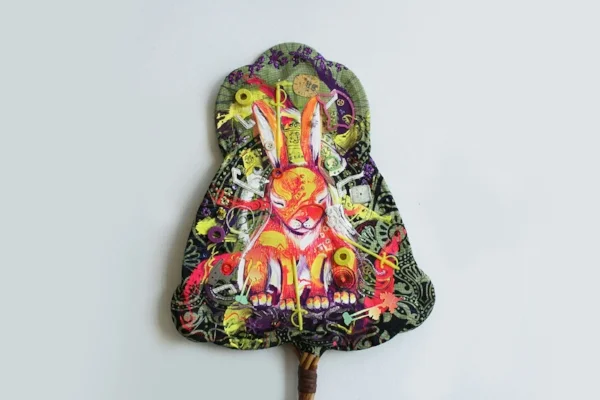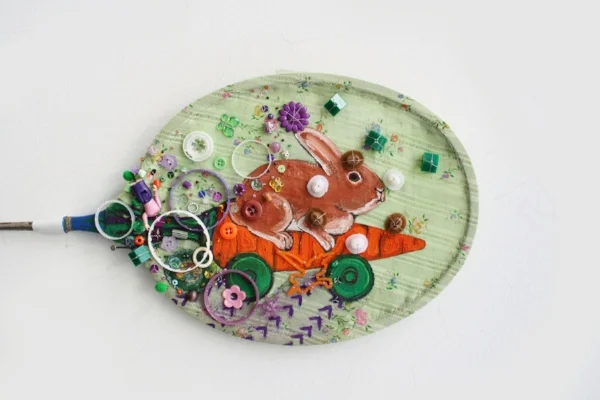 I started painting with gouache on fabric stretch over random objects like this badminton racket.